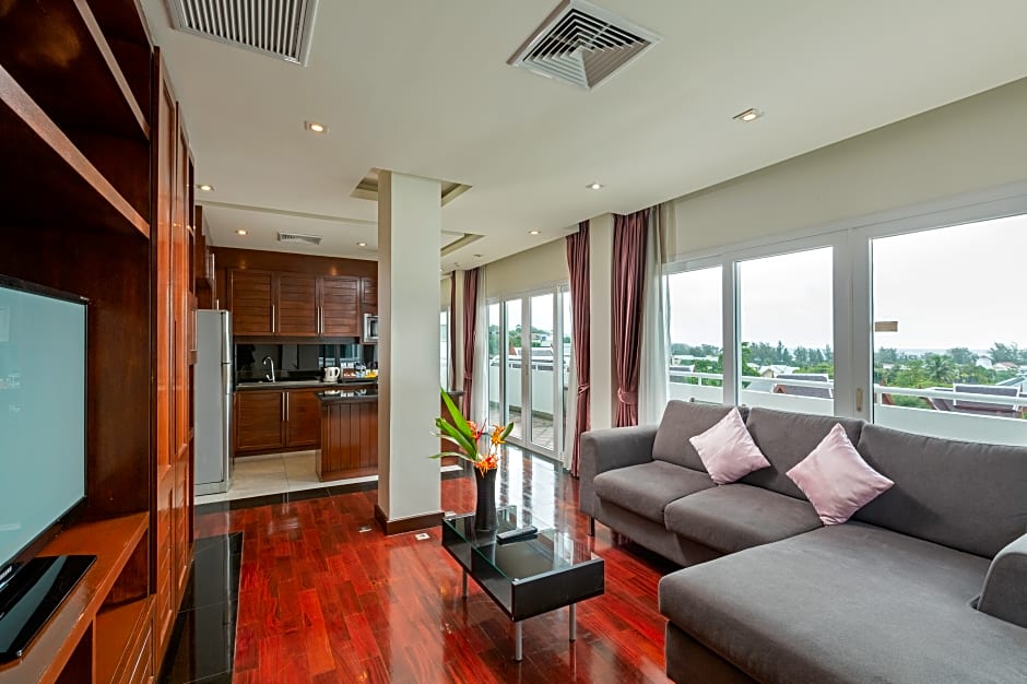 This spacious 2-bedroom suite features modern Thai-style furnishings, a well-equipped kitchenette, and 2 bathrooms.